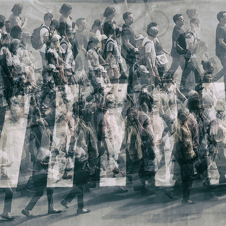 Inspirada por la fascinación que ejercen en mí las multitudes, recurro al uso de la cámara fotográfica con la intención de congelar los instantes, en un intento ficticio de detener el tiempo, justamente ese tiempo que se me escapa.