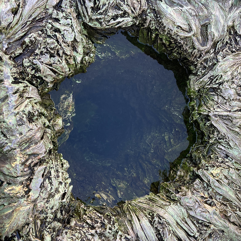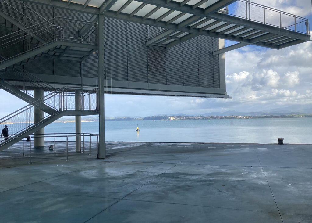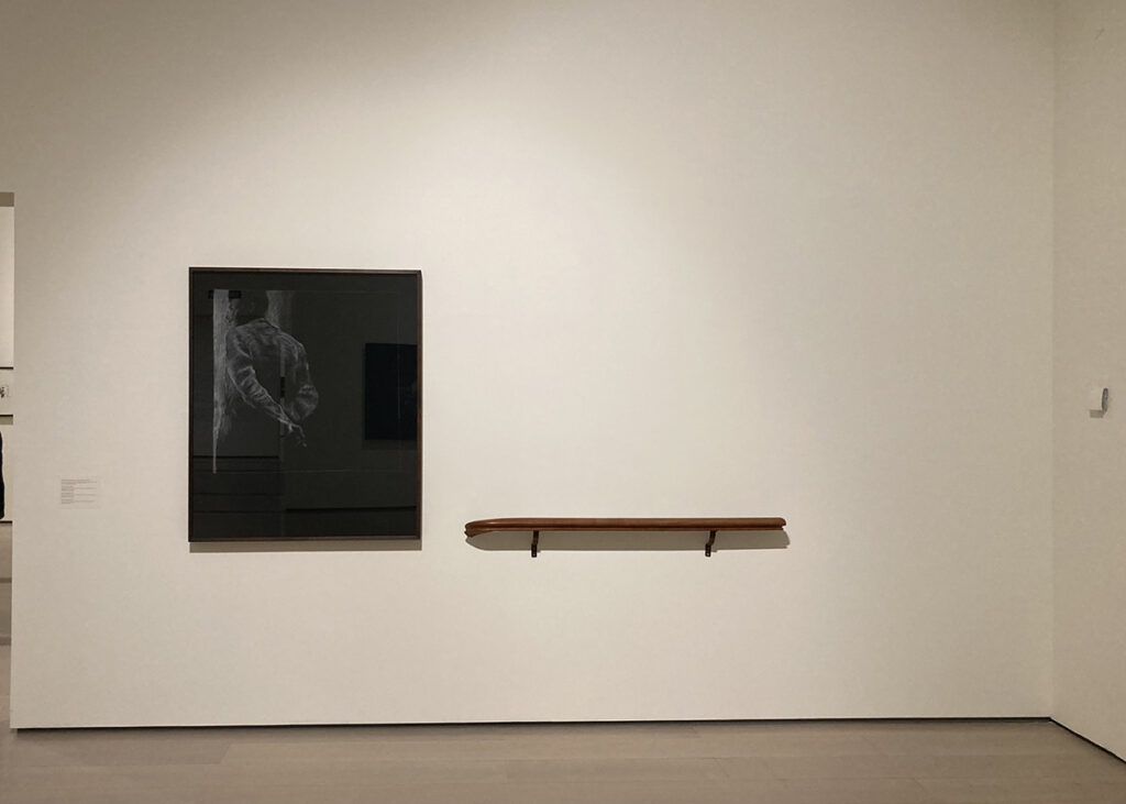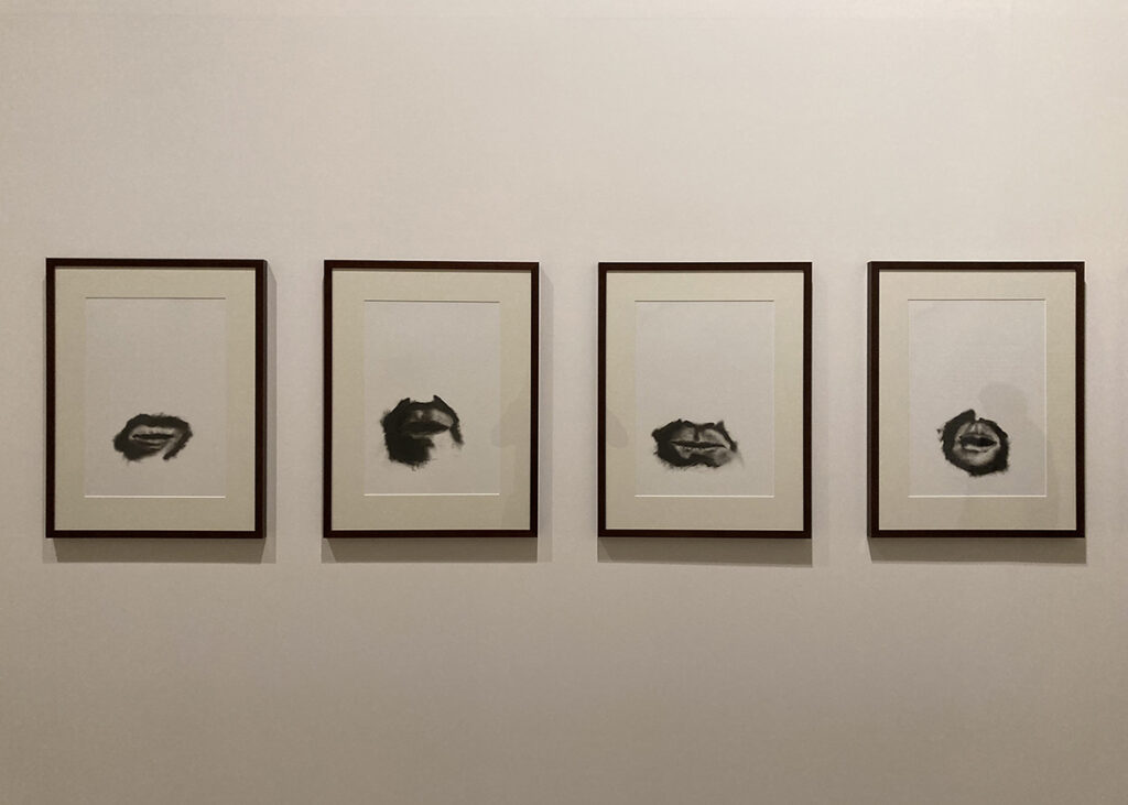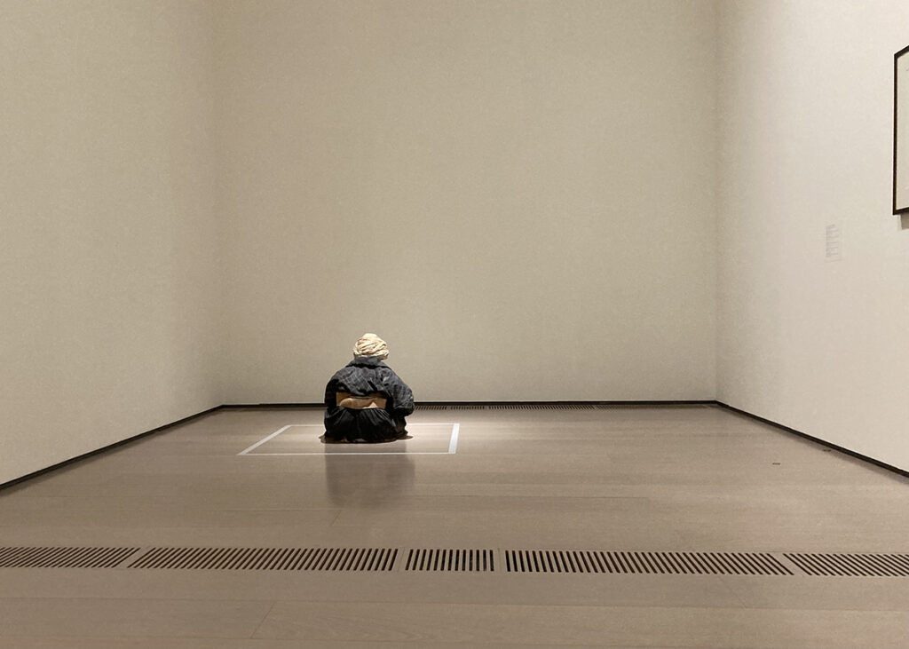 Nous continuons à contempler quelques dessins d’anatomie masculine une autre fois sur toile-tissu noir avec crayon blanc. Après nous arrivons à la salle principale du Musée avec vue sur la baie où nous pouvons admirer une magnifique installation avec ses iconiques sculptures masculines.