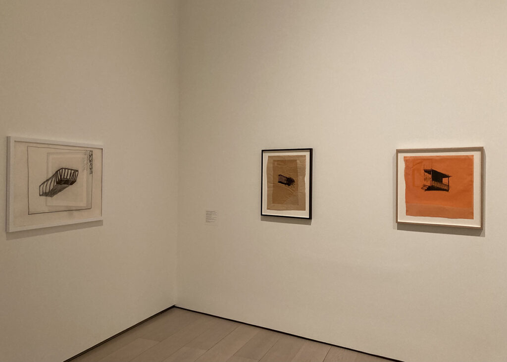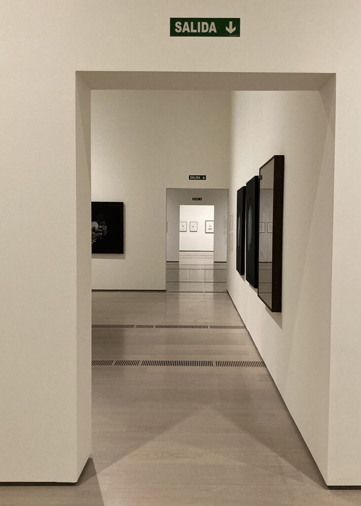Nous commençons en traversant un balcon, après nous contemplons de nombreux dessins et encore et encore nous rentrons dans le début pour contempler la relation avec le sculpture.