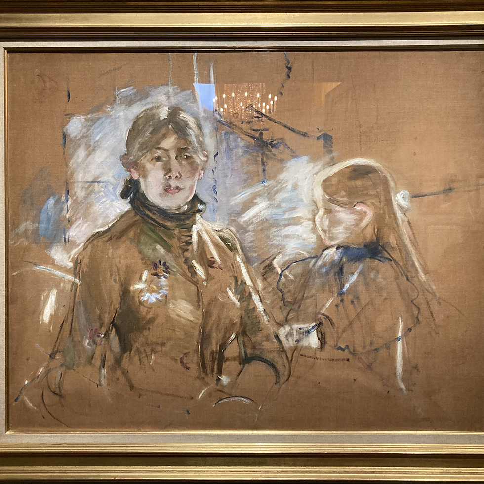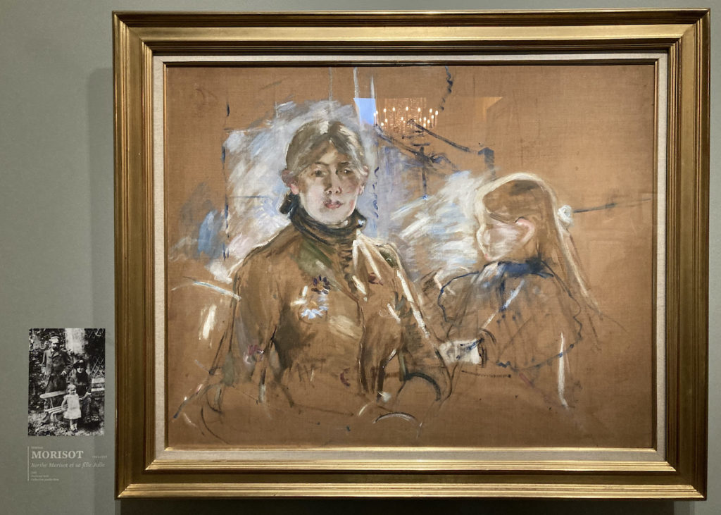 La première partie de l’exposition nous pouvons découvrir l’œuvre de Berthe à travers de nombreux portraits qu’elle a peints de sa fille. Nous pouvons aussi découvrir les portraits de son oncle et ses amis, Monet, Corot, Renoir ou Mallarmé.