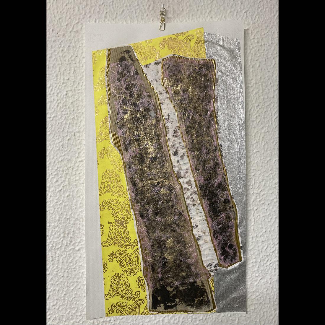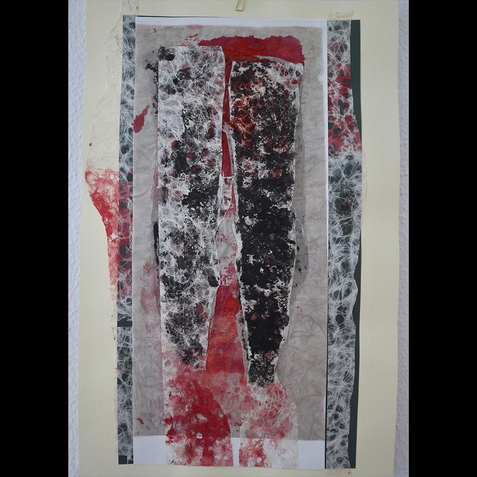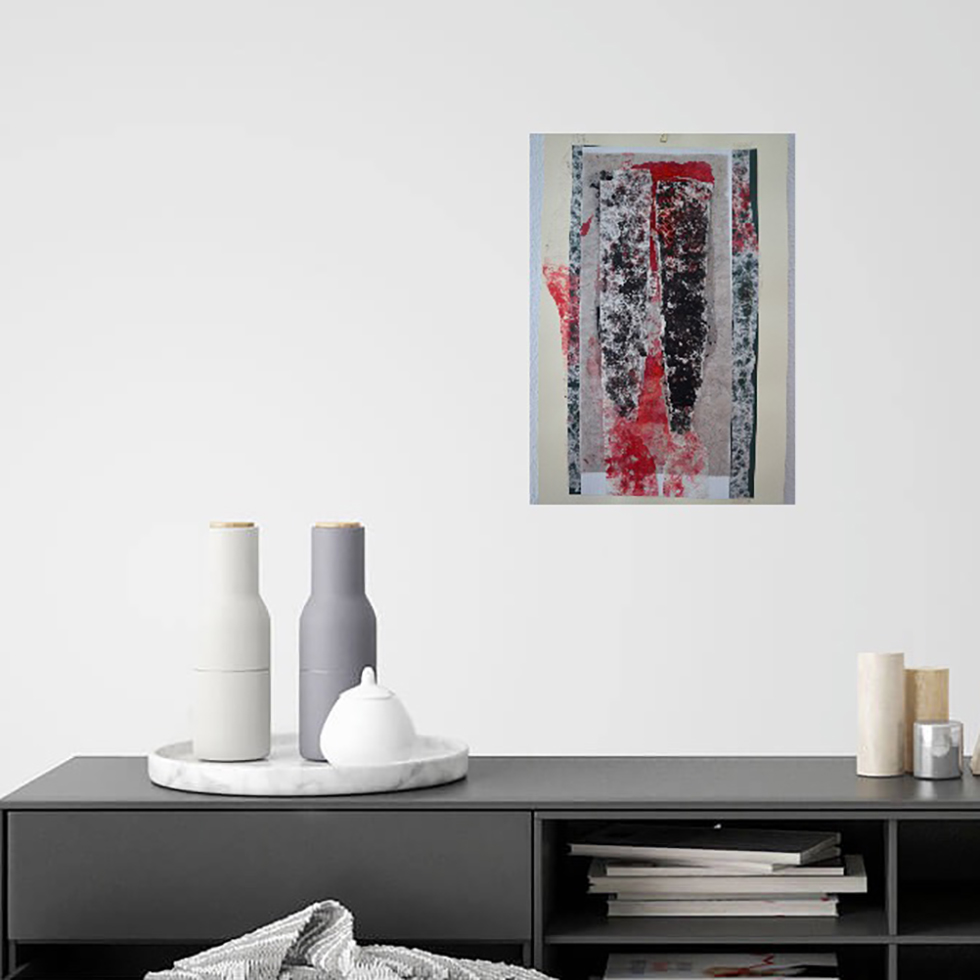Collage and serigraph. Original work on paper. Mixed media: collage, paper and ink. 50 x 25 cm.