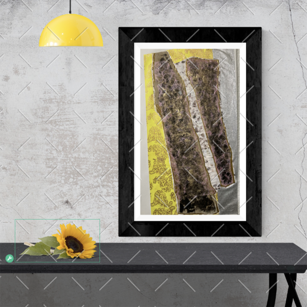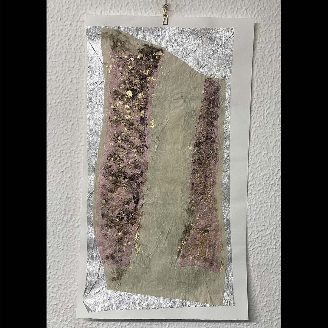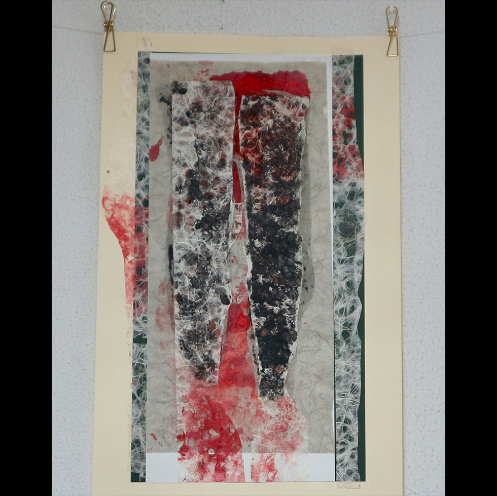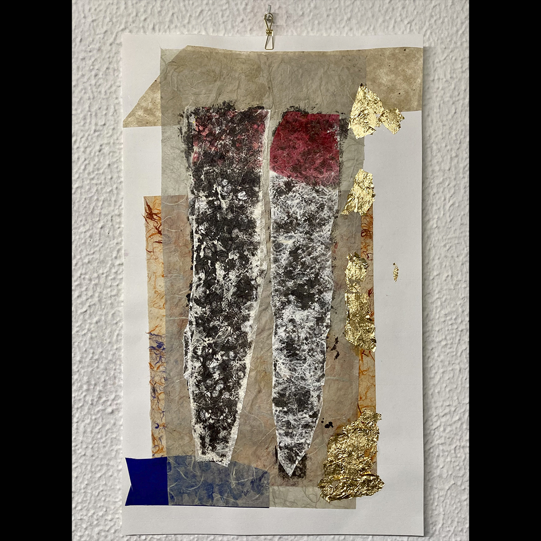 Collage and serigraph. Original work on paper. Mixed media: collage, paper and ink. 50 x 25 cm.