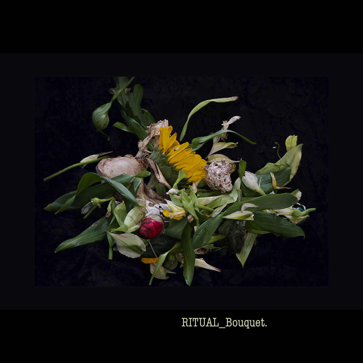 On a dramatic black background, natural flowers arrange to create ephemeral still life in this series of work that belongs to my project Ritual.