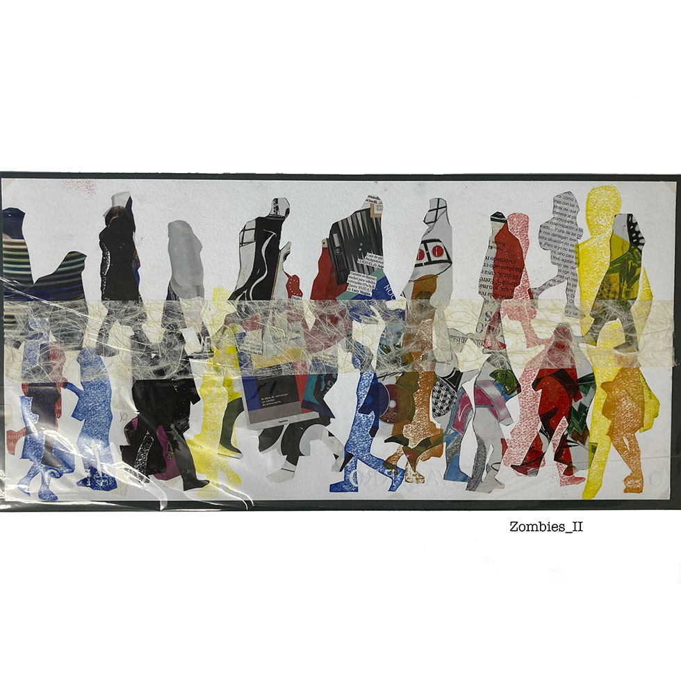 Zombies es una serie muy colorida y alegre compuesta por cinco obras ambientadas en las calles de París. Estas obras son una reflexión sobre una forma de vida en modo automático, en la que no pensamos ni tomamos decisiones propias, simplemente nos dejamos llevar por las corrientes o las modas modas del momento.